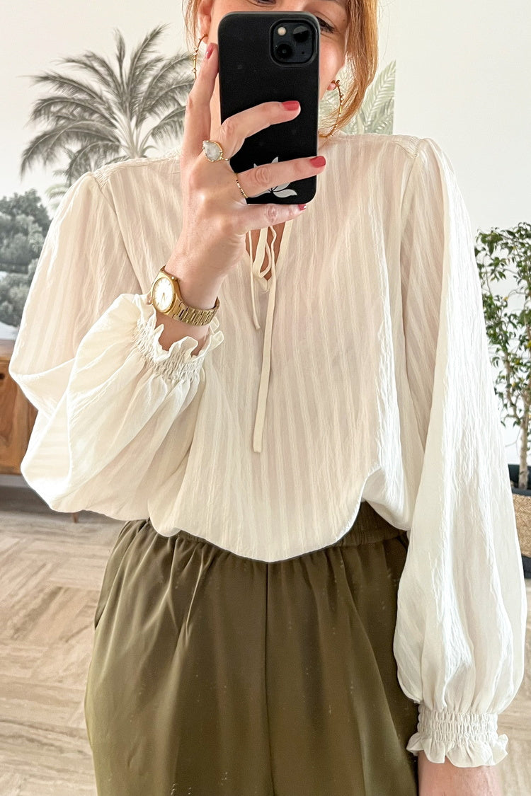 La blouse à manches longues Serinda a une coupe droite et des finitions délicates. L'encolure en V avec un lien à nouer apporte une touche de romantisme, tandis que les smocks aux épaules et aux poignets ajoutent du charme et de la texture. Inspirée d'un style bohème moderne, la blouse fluide Serinda propose une silhouette élégante et féminine.