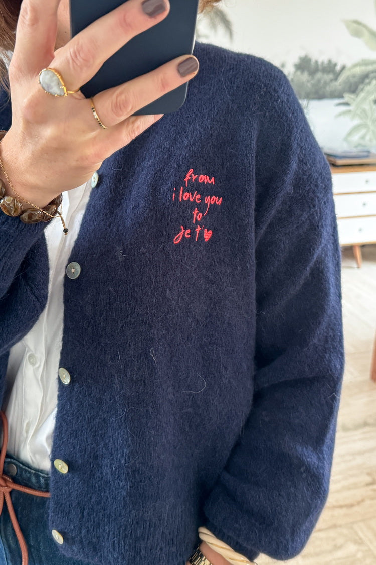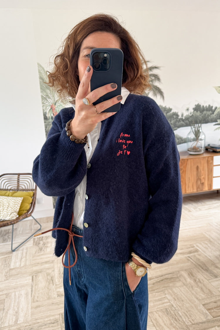 Le gilet Gaelle insuffle une touche de douceur à vos looks de saison. On aime son allure vintage, sublimée par l’inscription « From I love » brodée sur la poitrine, qui lui confère un charme unique. Confortable et facile à porter, il s’associe parfaitement à la chemise Shanna et au jean Grit pour un look casual et féminin.