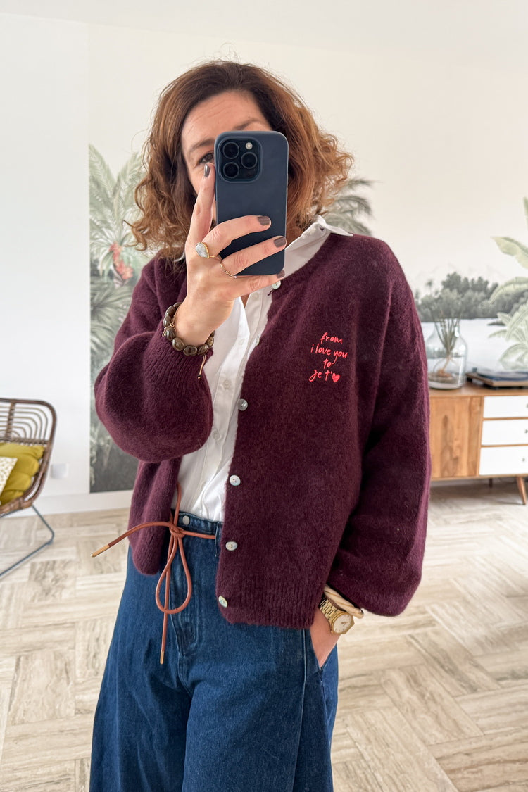 Le gilet Gaelle insuffle une touche de douceur à vos looks de saison. On aime son allure vintage, sublimée par l’inscription « From I love » brodée sur la poitrine, qui lui confère un charme unique. Confortable et facile à porter, il s’associe parfaitement à la chemise Shanna et au jean Grit pour un look casual et féminin.