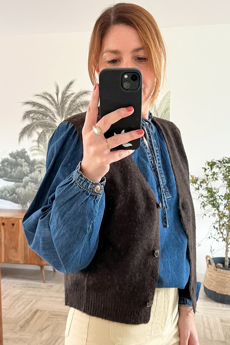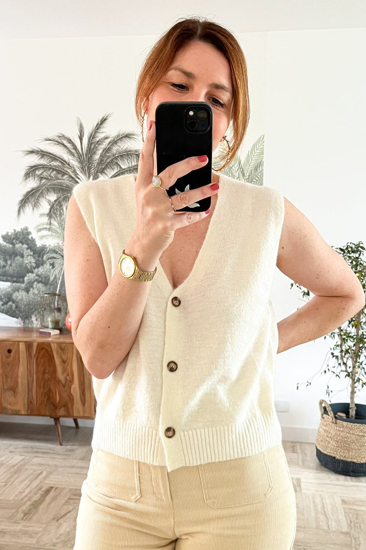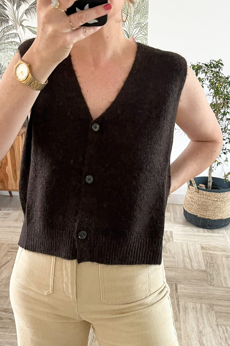Cardigan sans manches en laine et mohair