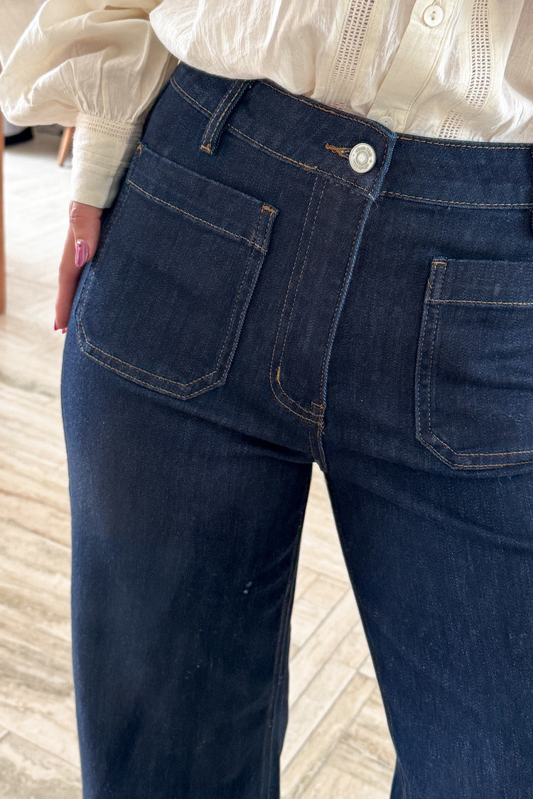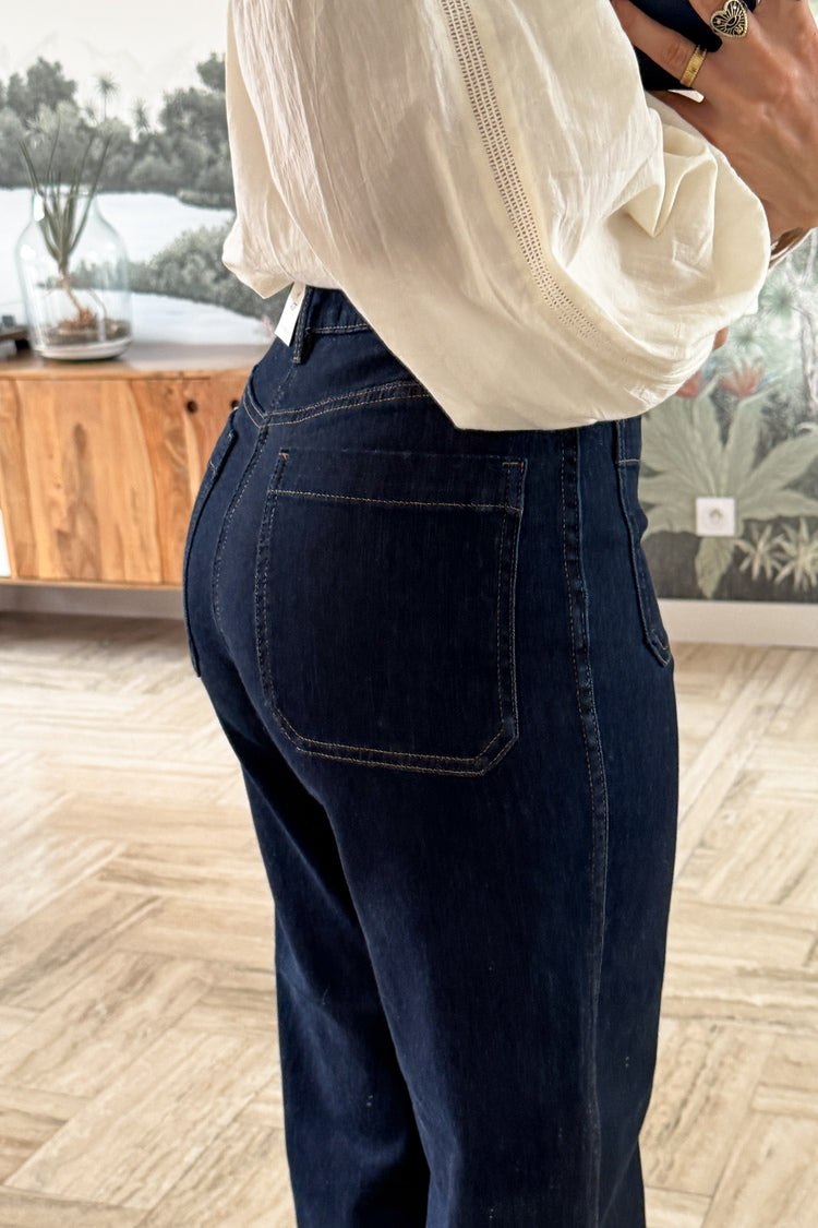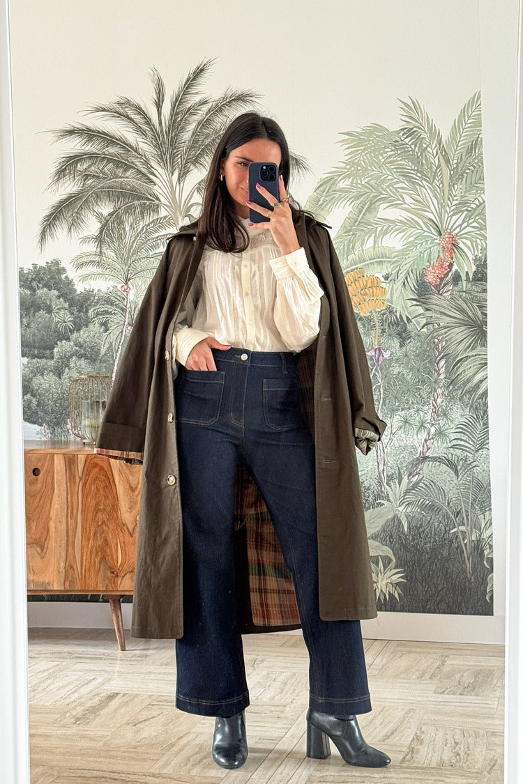 Le jean large The Frida Wilson se distingue par sa coupe ample et son esprit résolument moderne. Sa taille haute met en valeur la silhouette tout en offrant un confort optimal et une grande liberté de mouvement. Facile à associer, il se porte aussi bien avec un t-shirt basique qu’une chemise oversize. On l’associe ici à la chemise Tologna et au trench Cash pour un look chic et décontracté.
