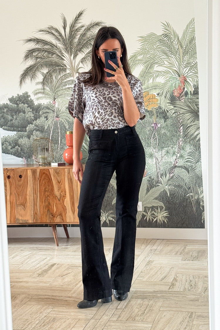 Le jean flare The Diana Power Stretch, en denim stretch, combine confort optimal et tenue irréprochable. Sa coupe ajustée aux hanches et aux cuisses s’évasant à partir du genou crée une silhouette flatteuse et tendance. La taille haute met en valeur la taille et allonge les jambes, apportant une touche de sophistication à votre look. On l’associe au t-shirt Annie et à la veste sans manches Lali pour un style moderne et affirmé.