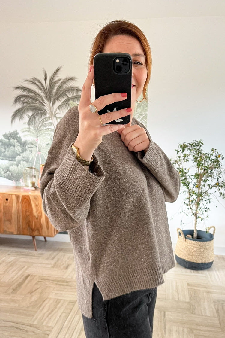 Le pull en lurex Salvador incarne l'élégance intemporelle. La coupe large et confortable a été pensée pour intégrer le vestiaire du quotidien. Les manches 3/4 apportent une touche de légèreté, tandis que l'encolure en V souligne le décolleté. Le pull à manches 3/4 Salvador présente des fentes sur les côtés et une coupe plus longue à l'arrière.