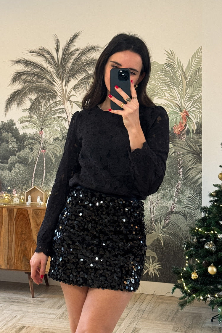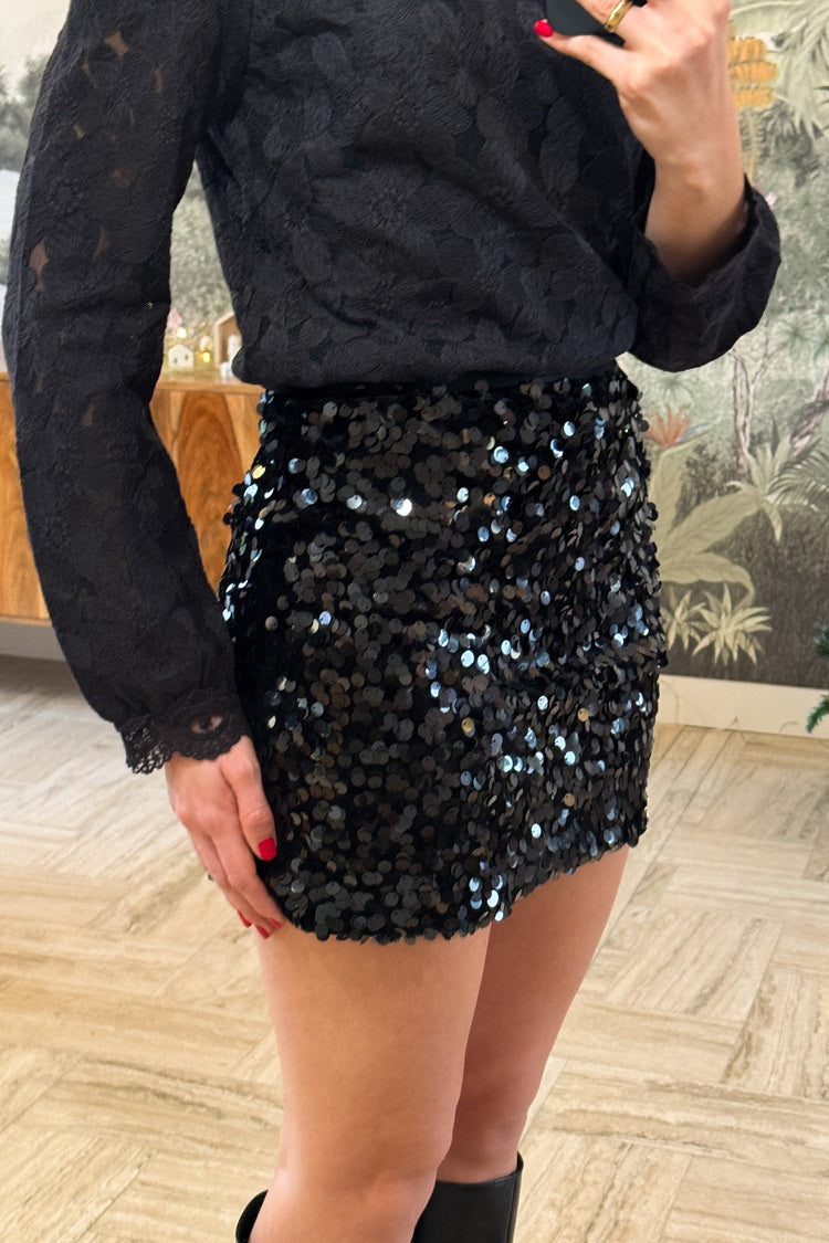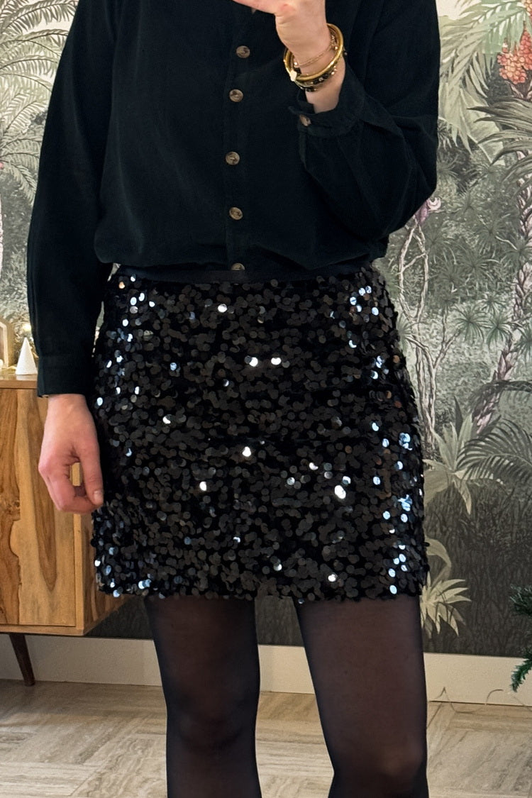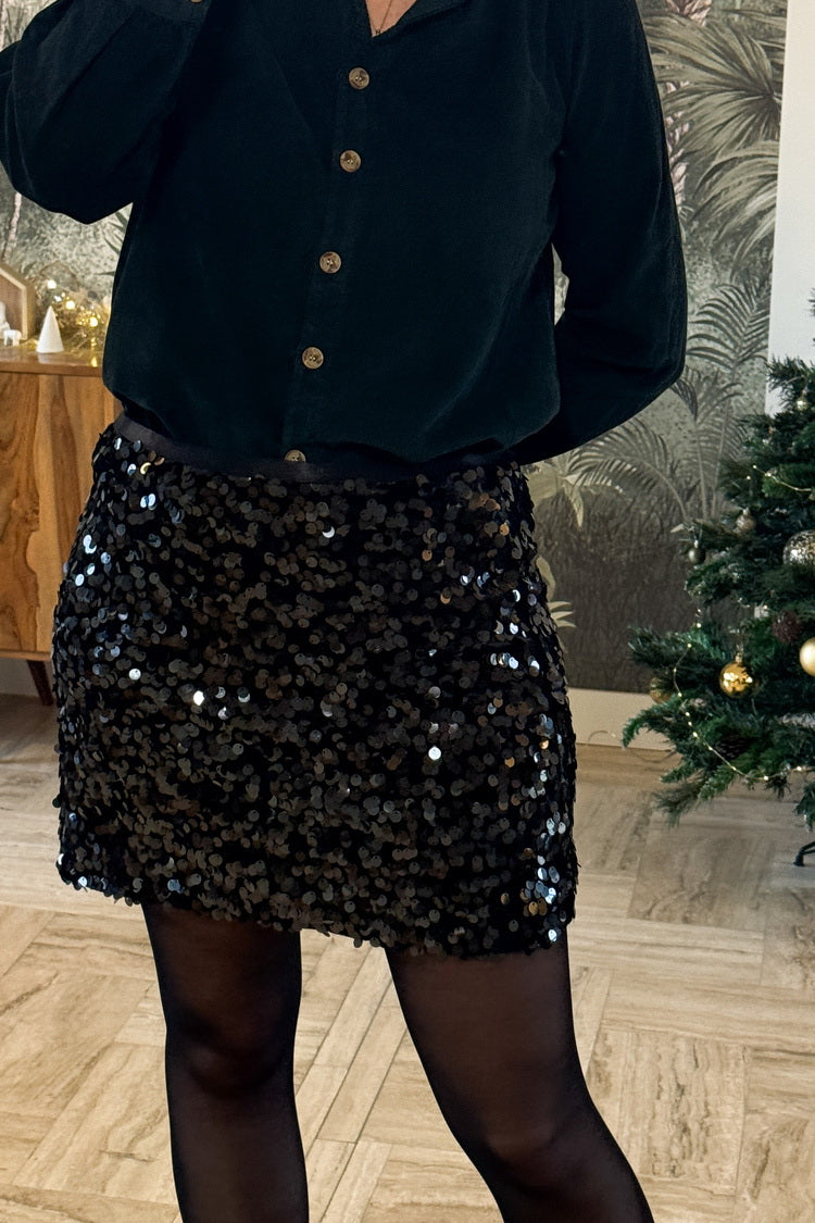 La jupe Ambre brille de mille feux et apporte une touche festive à vos tenues. Courte et confortable grâce à sa taille élastiquée, elle se porte avec la tunique Jeanne ou la chemise Sarah.