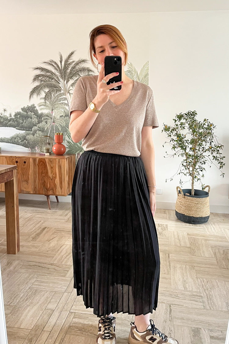 Portez-le sur la jupe Plisse noire avec une veste en jean une paire de baskets pour un look décontracté ou un perfecto et une paire de bottines pour un look plus chic.