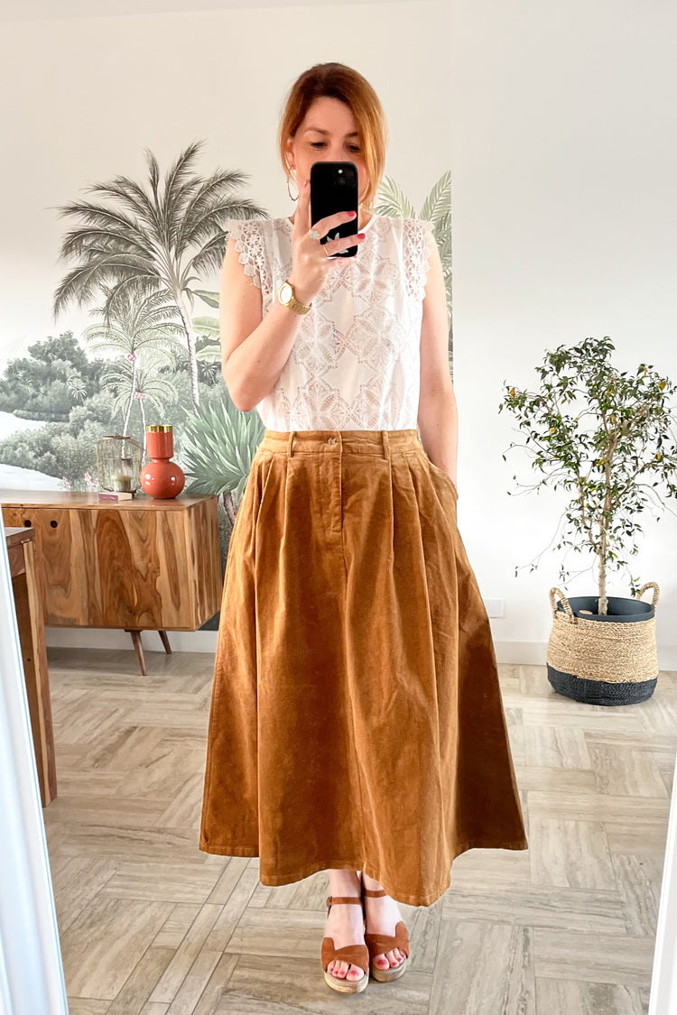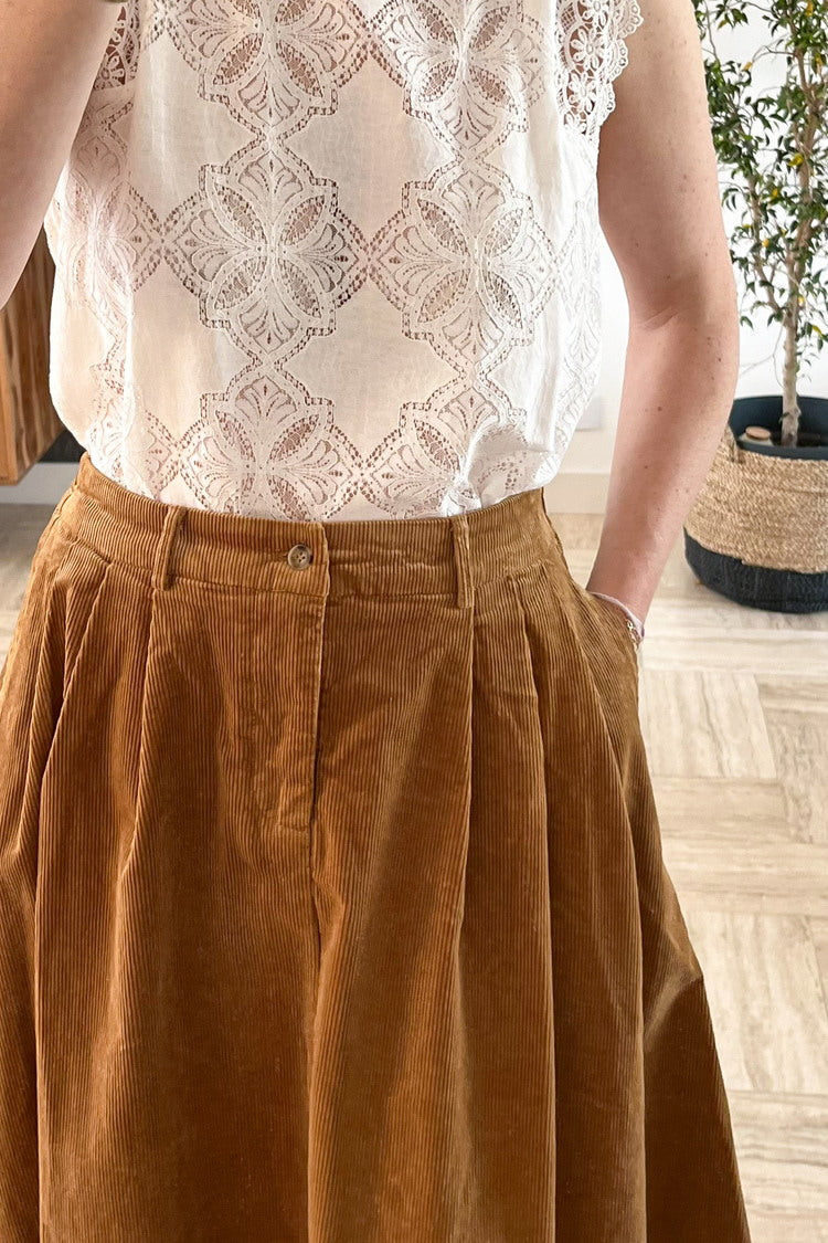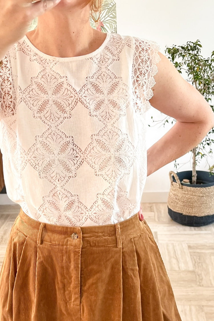 La blouse en dentelle sans manches Alizée à un côté très romantique et apportera une touche à vos tenues. Portez-la sur le jean James ou sur la jupe en velours Jasper avec une paire de bottines.