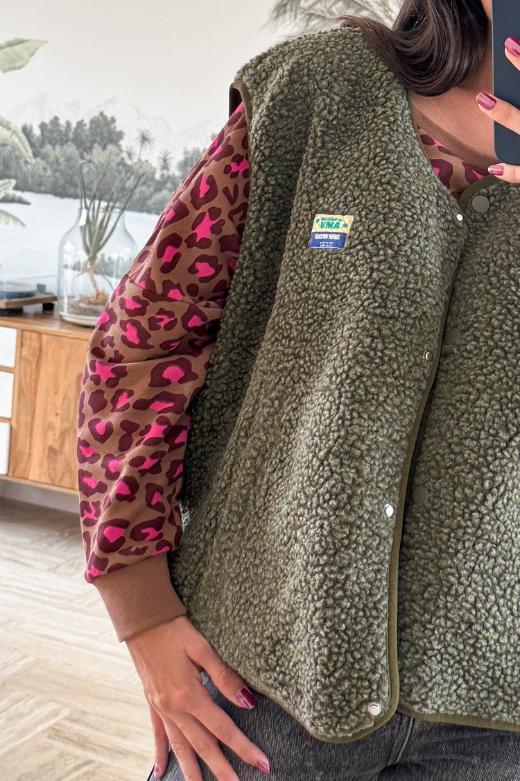 La veste sans manches Hok avec sa coupe molletonnée et son col rond apporte une touche casual et Colorée aux looks de saison. On l’associe facilement au sweat Sonia Léopard et au jean The Morrison pour un style décontracté et tendance.